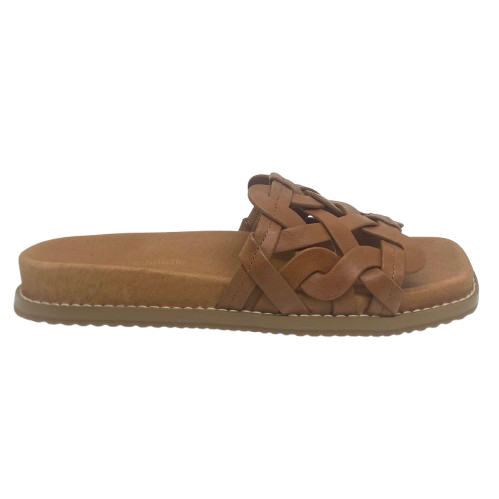 Elevate your everyday look with the Rory tan leather slide. It has a moulded footbed, cushioned sole and supple woven leather. Casual style you'll love to wear.